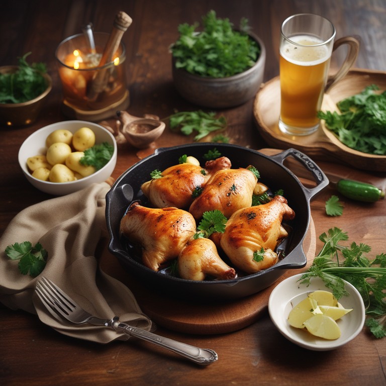 Frango com Batata e Cerveja na Bandeja de Ferro ao Fogão
