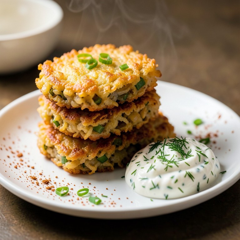 Savory Potato Noodle Fritters with Herbed Yogurt Dip