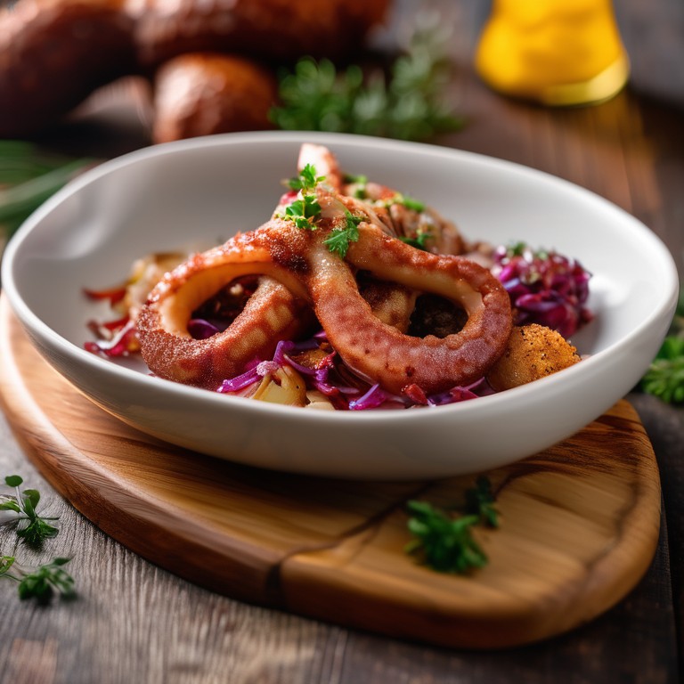 Pulpo Paprika Knoblauch Baguette mit Zwiebeln