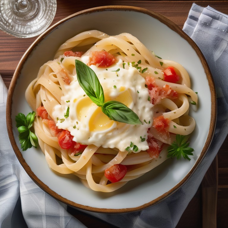 Genießen Sie diese frische Zitronen-Pasta mit einer köstlichen Eier-Creme, passierten Tomaten und herzhaftem Parmesan. Ein einfaches und dennoch raffiniertes Gericht.