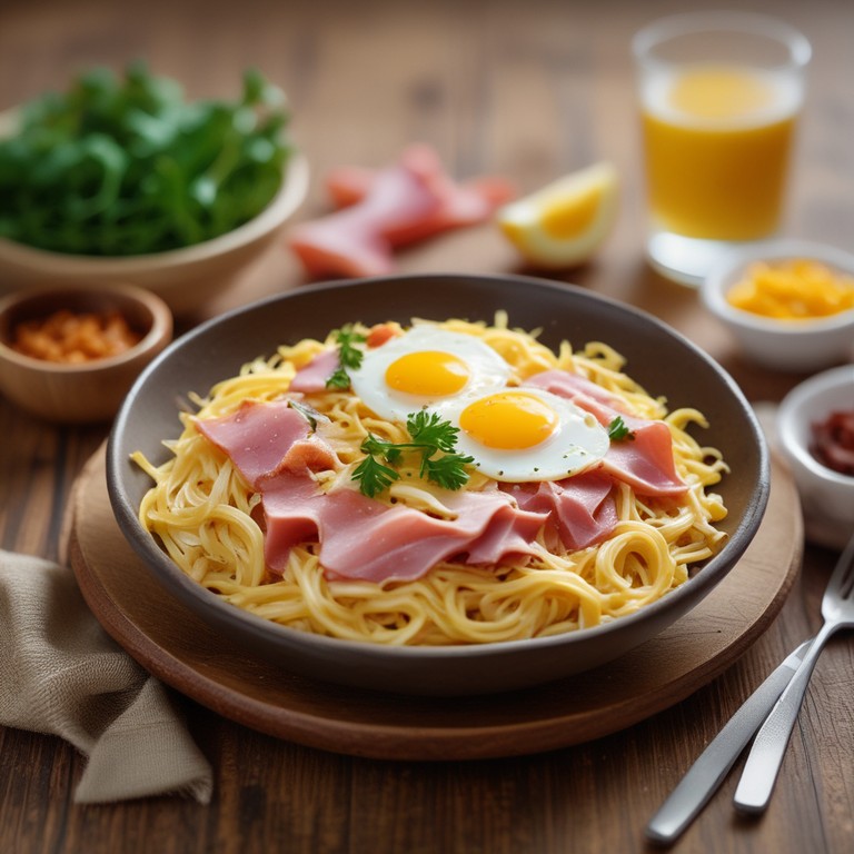 Este plato de fideos con queso, huevo y jamón es una deliciosa combinación que ofrece un sabor reconfortante y satisfactorio. Perfecto para un almuerzo rápido o una cena ligera, es fácil de preparar y seguro que complace a toda la familia.