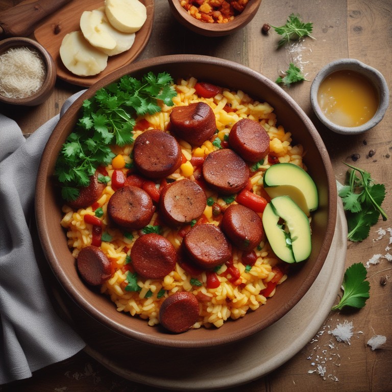 Este delicioso plato combina la intensidad del chorizo con la suavidad del arroz y la textura de las papas, creando una comida reconfortante y llena de sabor. Perfecto para compartir en familia o con amigos.