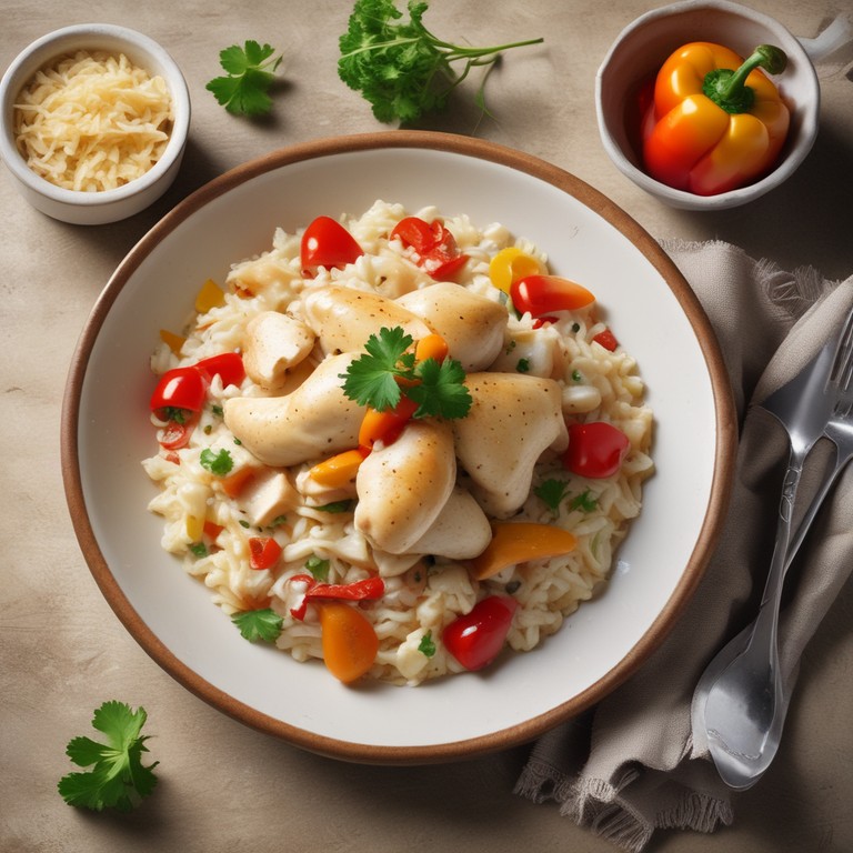 Dit gerecht combineert malse kipfilet met kleurrijke paprika's en een romige saus, geserveerd op een bed van rijst. Perfect voor een doordeweekse maaltijd!