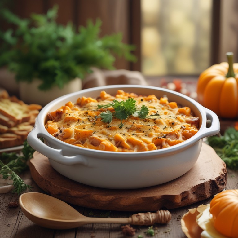 Kürbis-Thunfisch Auflauf mit Zwiebeln und Knoblauch
