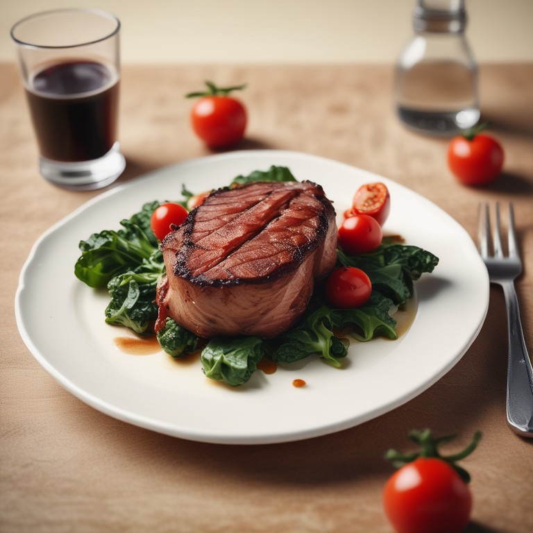 Este plato combina la jugosidad del filet mignon envuelto en tocineta con una rica salsa de pimienta negra, todo sobre un suave puré de papas y acompañado de vegetales frescos. Perfecto para una cena especial.