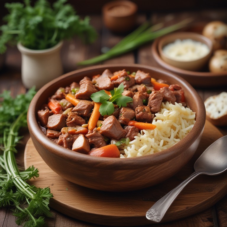 Un plat réconfortant et nourrissant qui combine des viandes savoureuses avec des légumes frais et du riz, parfait pour un dîner en famille.