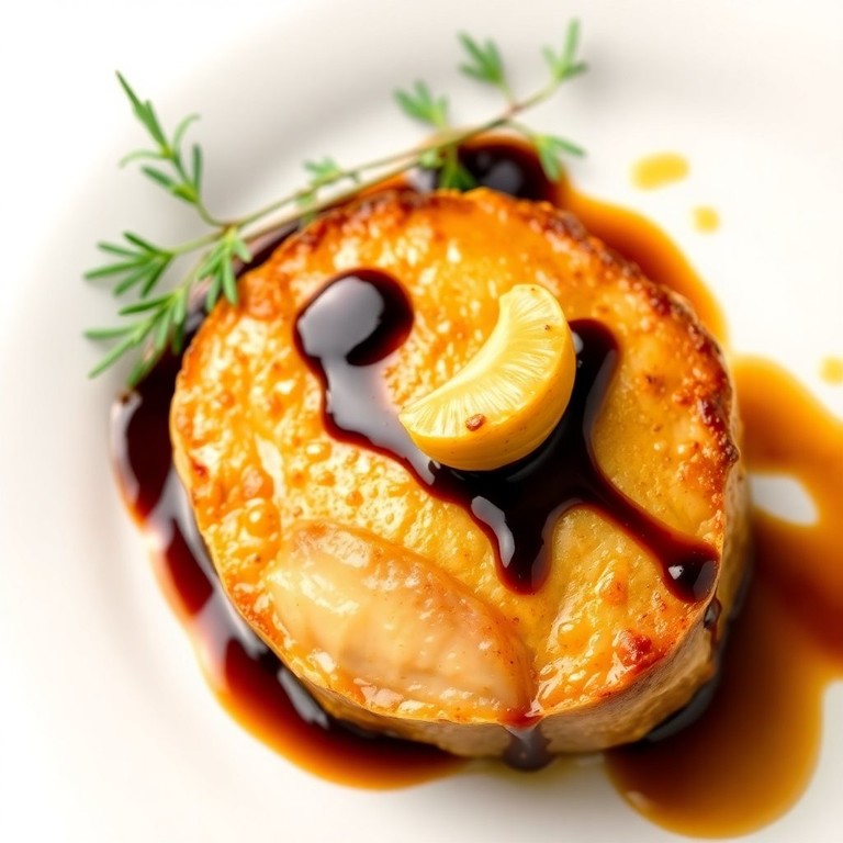 This variation of the classic pan-seared foie gras incorporates the aromatic flavor of garlic, adding a delightful twist to this luxurious appetizer. The garlic enhances the richness of the foie gras, making it an unforgettable dish perfect for special occasions.