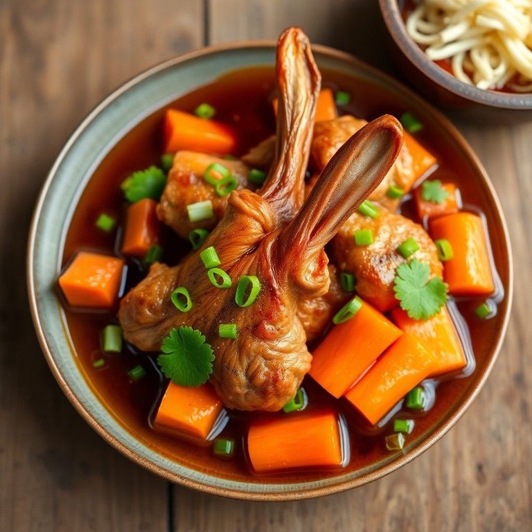 Dit Aziatisch gestoofd konijn met wortelen is een heerlijk gerecht dat de umami-rijke smaken van sojasaus en oestersaus combineert. Het konijn wordt langzaam gegaard tot het super mals is, perfect voor een gezellige maaltijd.