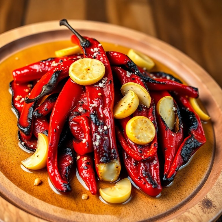 Pimientos Escalibados con Aceite de Oliva y Ajo