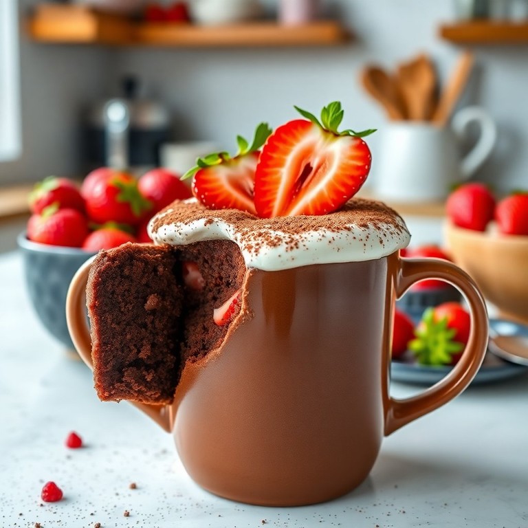 Bolo de Caneca Fit de Chocolate Meio Amargo com Morangos