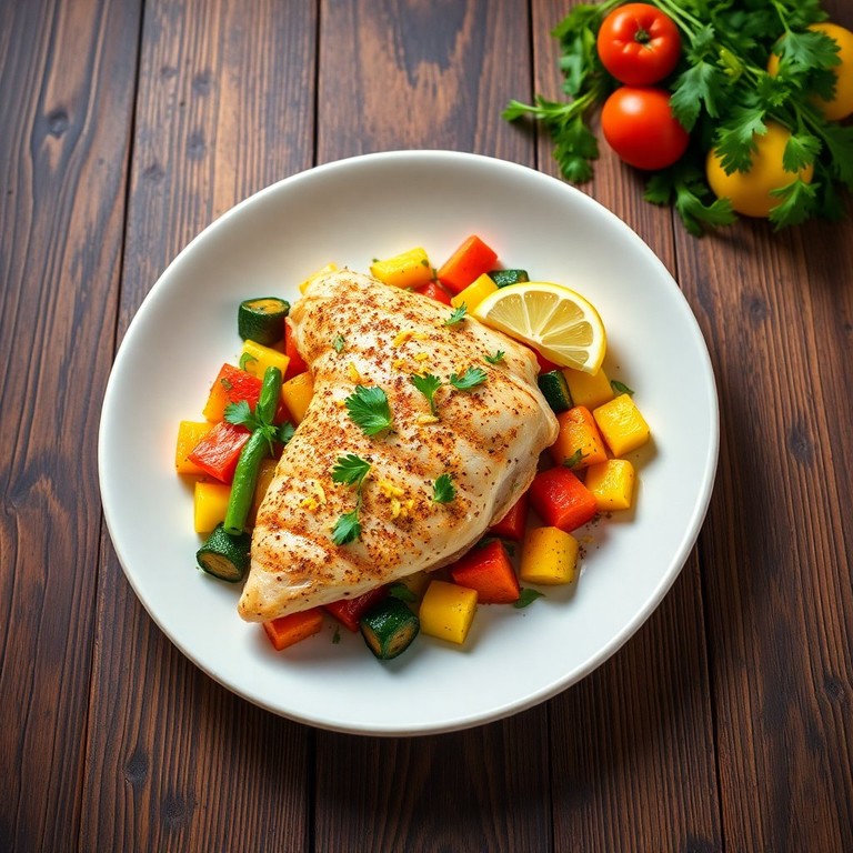 Deze kruidige kipfilet is snel en eenvoudig te bereiden, perfect voor een doordeweekse maaltijd. De marinade geeft de kip een heerlijke smaak, terwijl de seizoensgroenten zorgen voor een frisse en kleurrijke presentatie.