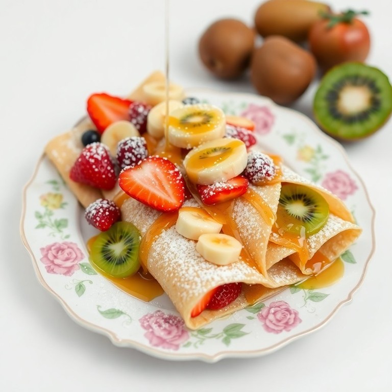 Estas crepas dulces son perfectas para un desayuno o postre, rellenas de frutas frescas y un toque de miel que las hace irresistibles.