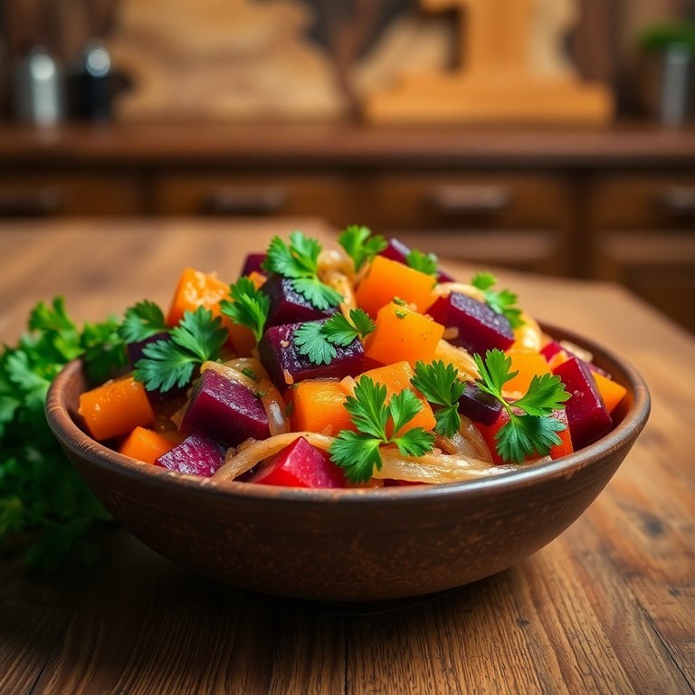 Um acompanhamento saboroso e saudável para qualquer prato, este refogado combina a doçura da beterraba e da cenoura com a suavidade da cebola e o toque especial do alho.