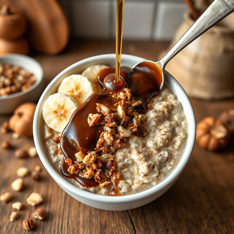 Un desayuno energético que combina la suavidad de la avena con el dulzor de la miel y el chocolate, perfecto para comenzar el día con energía.