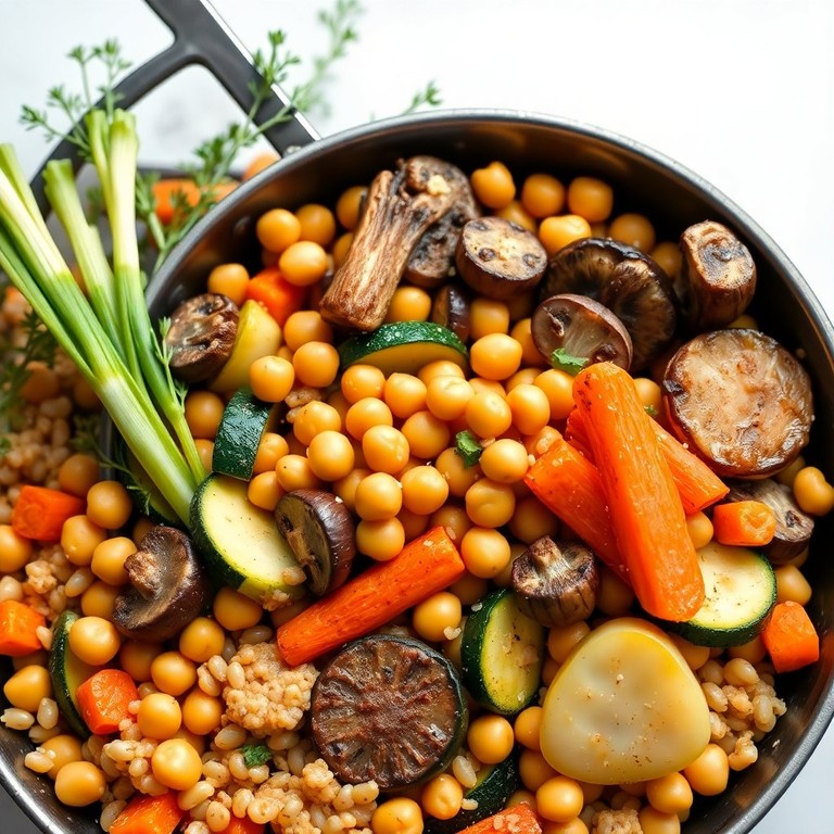 Diese Kichererbsen-Gemüse-Pfanne ist eine schnelle und gesunde Mahlzeit, die mit aromatischen Champignons und knackigem Gemüse überzeugt. Die Kombination aus Kichererbsen, Perlgraupen und einer Vielzahl von frischem Gemüse macht dieses Gericht nicht nur nahrhaft, sondern auch unglaublich lecker. Perfekt für ein schnelles Abendessen unter der Woche.
