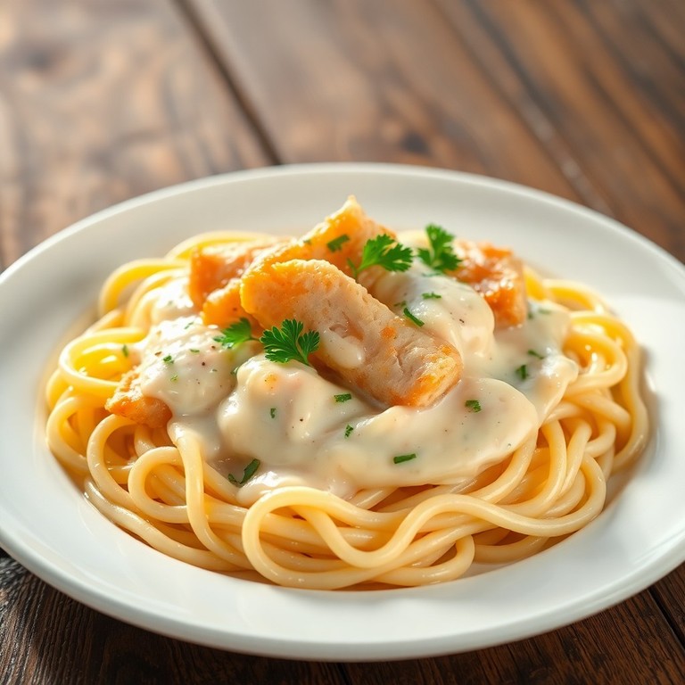 A rich and indulgent Italian classic featuring tender chicken strips in a velvety Alfredo sauce, ready in under 30 minutes. This creamy chicken Alfredo pasta combines perfectly cooked fettuccine with a luscious homemade sauce, making it a comforting and satisfying meal for any occasion.