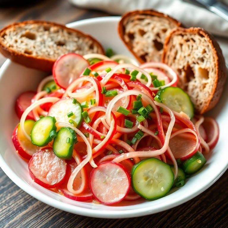 Ein klassischer bayerischer Wurstsalat mit laktosefreier Fleischwurst, knackigen Radieschen, Gewürzgurken und würzigem Essig-Senf-Dressing. Perfekt für schnelle Mahlzeiten, Brotzeiten oder als herzhafte Vorspeise. Authentisch, unkompliziert und ideal für laktoseintolerante Genießer.