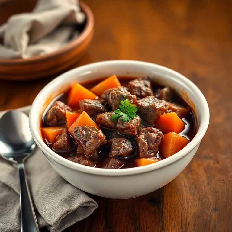 Un clásico guiso de carne tradicional con trozos tiernos de res, patatas, zanahorias y tomates, cocinado lentamente para lograr una mezcla de sabores profunda y reconfortante. Ideal para una comida sustanciosa en días frescos, este estofado combina ingredientes sencillos con técnicas clásicas para un resultado delicioso y aromático.
