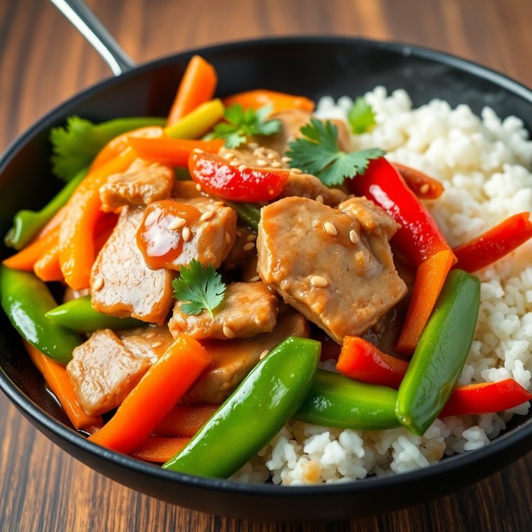 This Asian-Inspired Pork Chop Stir-Fry features thinly sliced pork chops quickly stir-fried with crisp vegetables and a savory soy-based sauce. It's a fast, flavorful dish that balances tender meat with vibrant veggies and bold Asian flavors, perfect for a weeknight dinner.