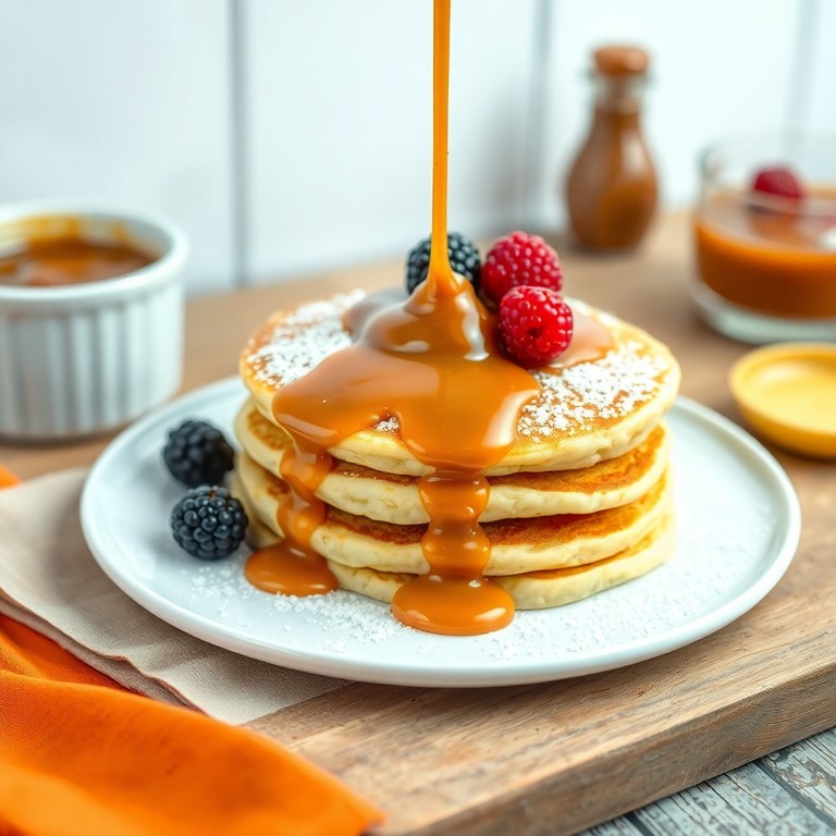 Uma calda rica e suave de caramelo, perfeita para dar um toque sofisticado às suas panquecas doces, pronta em 10 minutos. Esta calda combina a doçura do açúcar caramelizado com a cremosidade do creme de leite, resultando em um molho aveludado que realça qualquer panqueca.