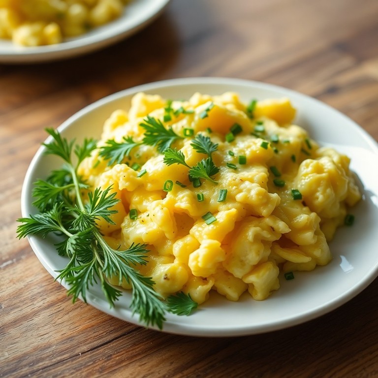 Простой и быстрый завтрак из нежного скрембла — взбитых яиц, приготовленных на сливочном масле с добавлением свежей зелени. Это блюдо идеально подходит для начала дня, сочетая в себе мягкую текстуру и аромат свежих трав.