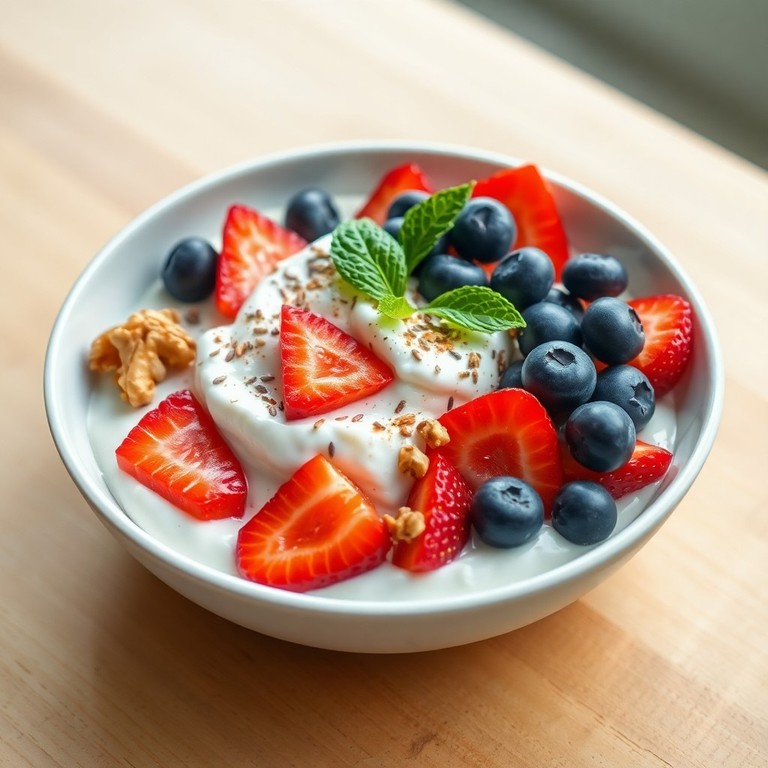 Una opción rápida y ligera que incluye proteínas, antioxidantes y grasas buenas, ideal para comenzar el día con energía. Este desayuno saludable y bajo en calorías combina la cremosidad del yogur griego con la frescura de frutas variadas y el aporte nutritivo de semillas, proporcionando un equilibrio perfecto para iniciar la jornada.