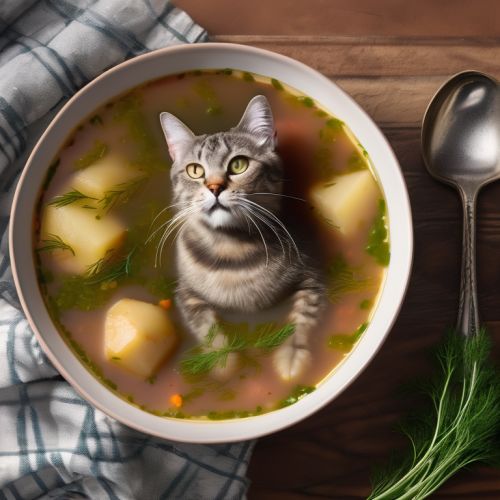A hearty and flavorful soup made with cat meat, potatoes, dill, and insects.