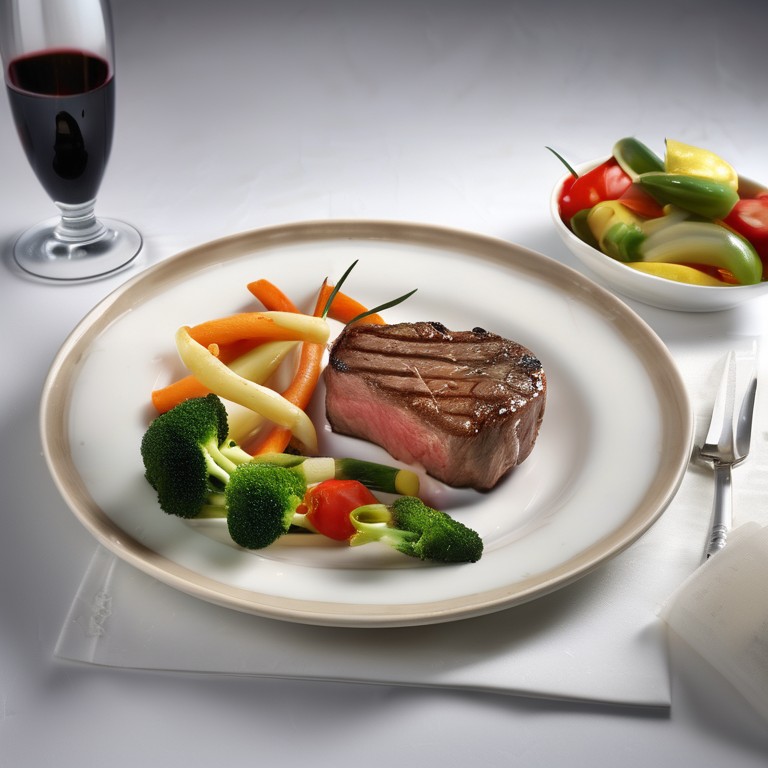 Un délicieux steak de thon grillé servi avec des nouilles savoureuses et des légumes frais.